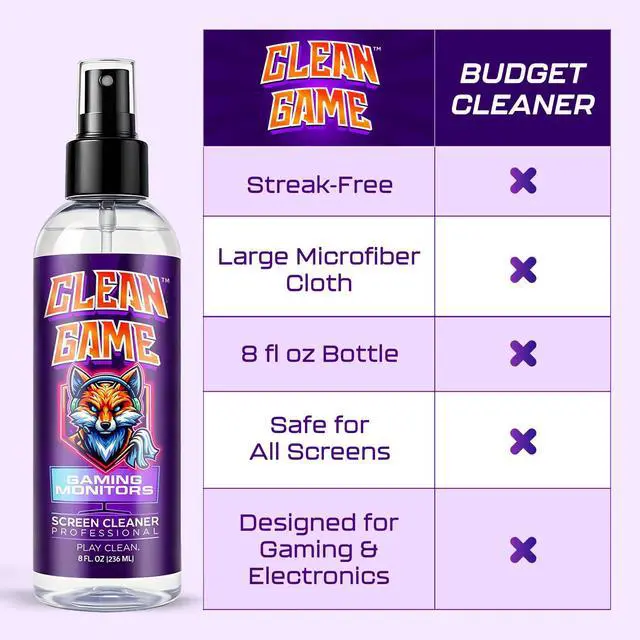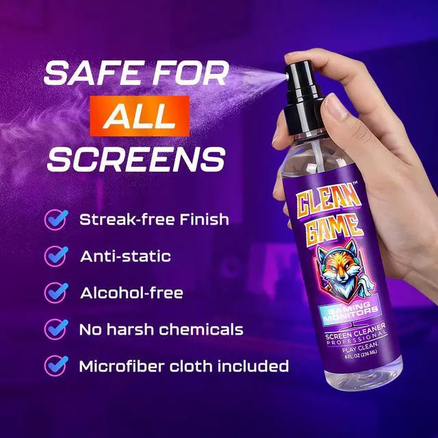 Clean Game is your ultimate gaming screen monitor cleaner. Safe for all screens, this professional-grade formula removes fingerprints, dust, and smudges without harming your gear. It’s scratch-free, alcohol-free, and ammonia-free, perfect for your gaming monitor and gaming console.