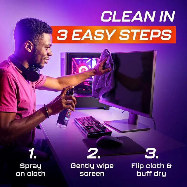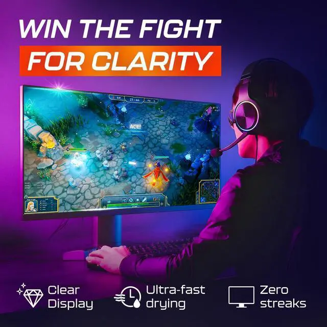 | Streak-Free Cleaning Formula | Our advanced formula ensures a streak-free clean every time. The non-residue cleaner is perfect for removing fingerprints, dust, and smudges on any gaming screen monitor. Ideal for gaming console screens too! |