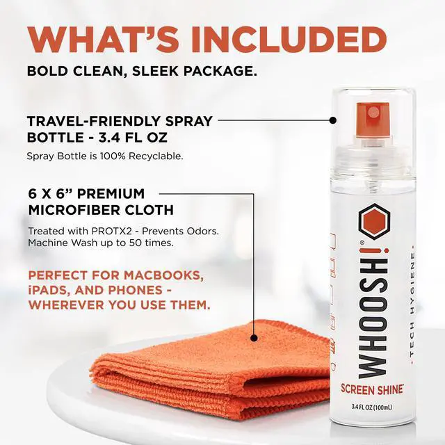 ![WHOOSH! Screen Cleaner Spray and Wipe [Set of 18] 1 fl oz + 1 Microfiber Cleaning Cloth - Travel ...](http://c1.neweggimages.com/sellingpilot/modules/product/a-plus/5ca70c5583125d0307db1f6992a63895ed3f3c2f52407696069c949bf451a125.jpg)