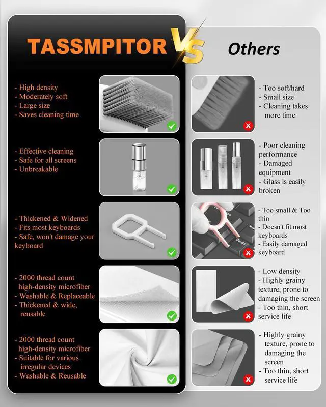 This polishing cleaning cloth is 2mm thick, it effectively absorbs stubborn stains, no fiber shedding on the screens. It can be replaced and meet your multiple needs. High-quality microfiber cloths are extremely soft as well as durable. Stop risk scratching your expensive new phone or laptop screen with a cheap screen cleaning set.