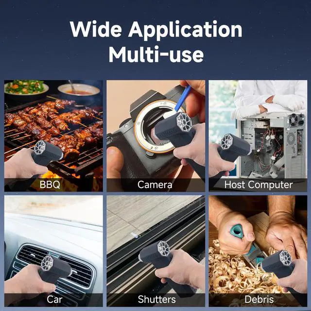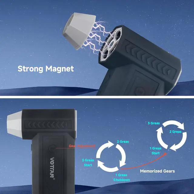 Powerful & Efficient Performance: Equipped with a high-speed brushless motor, maximum speed up to 150,000 rpm, generates peak wind speeds up to 60m/s. Easily removes debris and dust hidden in various crevices, and 3 gears of adjustable wind speed for your different usage tasks.