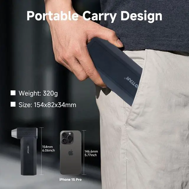 Portable & Small: Our small blower is made of made of high quality composite materials, which is lightweight, strong and durable, only 0.7lbs and roughly the size of a 6.1inch smartphone, convenient to carry around. Silicone cover is non-slip and sweat-proof, comfortable to hold.