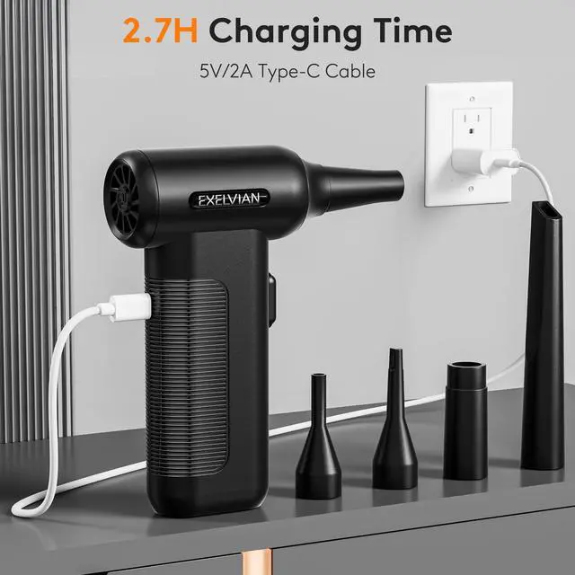 • Rapid 2.7-Hour ChargeThe air duster supports Type-C charging, achieving a full battery in just 2.7 hours. Once charged, it delivers up to 100 minutes of continuous runtime on the first speed setting. With 4 versatile charging modes, it caters to on-demand power needsideal for indoor or outdoor use