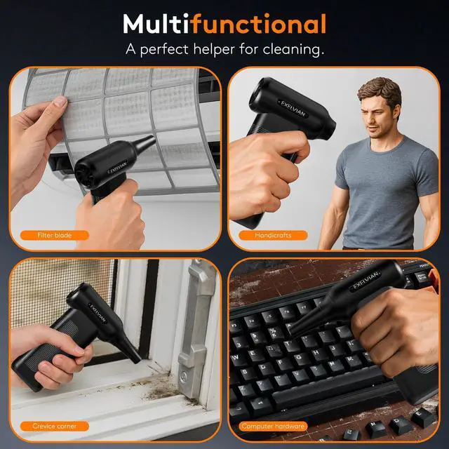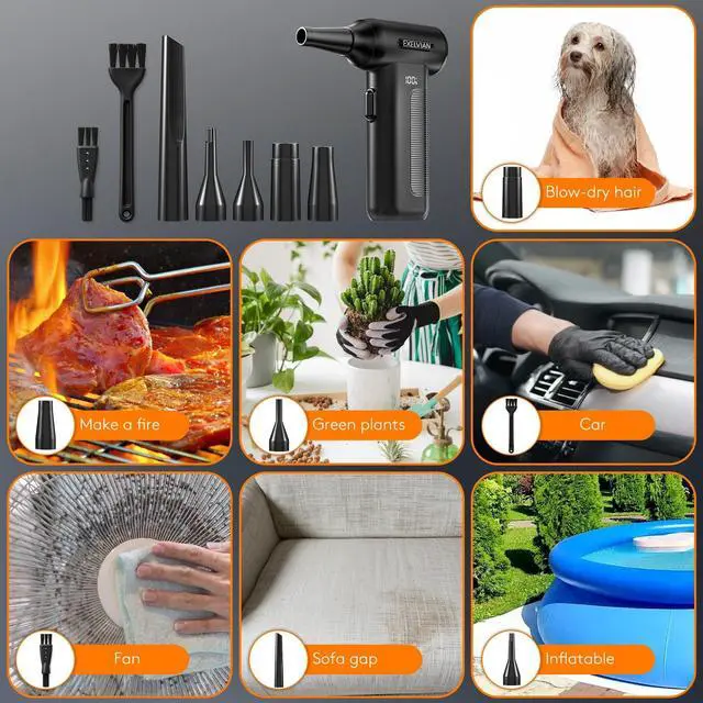 • Multi-FunctionalSuitable for various scenarios. It can also be used for cleaning window grilles, igniting campfires, inflating swimming rings and air beds, air conditioners, etc. Convenient for cleaning in dimly lit corners