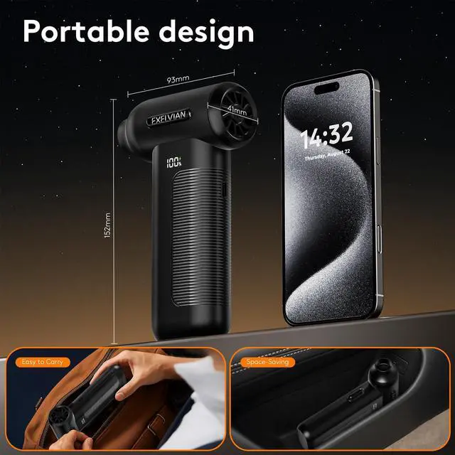 • Ultra-Portable & DurableCrafted from high-quality, heat-resistant, rigid ABS material, this duster combines a compact yet durable design with an ergonomic handle for comfortable grip. Its ultra-lightweight body effortlessly accesses tight spaces (like machinery corners) and travels outdoor, while intuitive controls ensure hassle-free operationperfect for both pros and casual users
