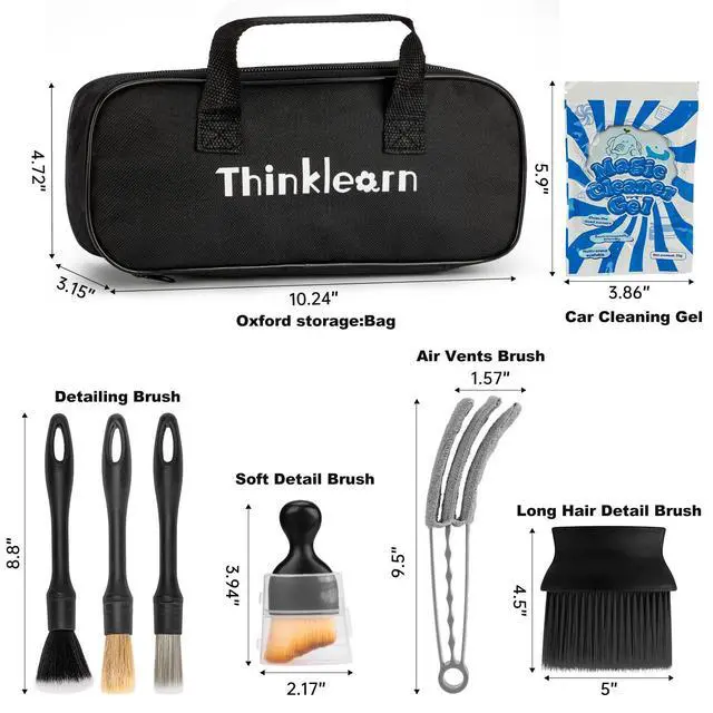 Professional Car Interior Detailing Kit: This automotive cleaning tool set includes 3 precision car detailing brushes, 1cleaning gel, 1 long hair detail brush, 1 air vent brush, 1 soft detail brush, and 1 portable storage bag. Different cleaning tools are specifically designed for various car parts, reaching into the smallest crevices that traditional sponges and cloths cannot access, providing your vehicle with comprehensive deep cleaning experience.