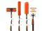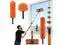 Telescopic extension pole with 3/4" American standard thread, can reach a length of up to 24 foot with fan blade leaner, cobweb duster with extension pole & window squeegee Kit, washable dust brush. The 4 flap locks on the extension pole are used to freely adjust to any length and height you want and lock it in place.