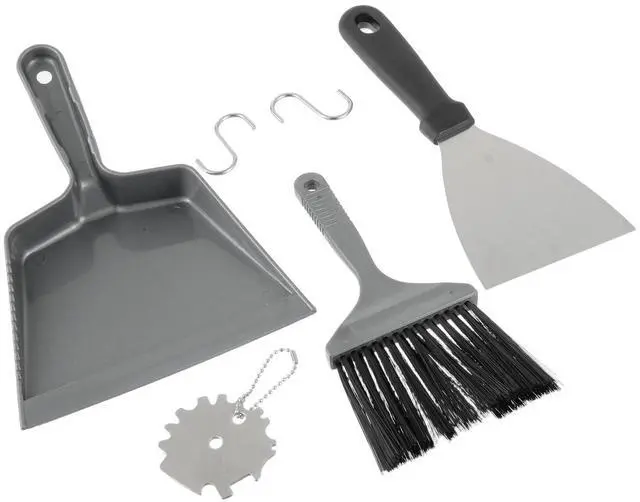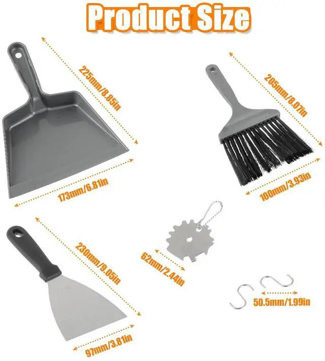 NOTE: The material of brooms and dust scoop is plastic, which is not resistant to high temperatures, need to wait for the temperature of the barbecue grill to decrease before cleaning