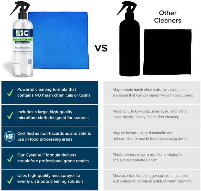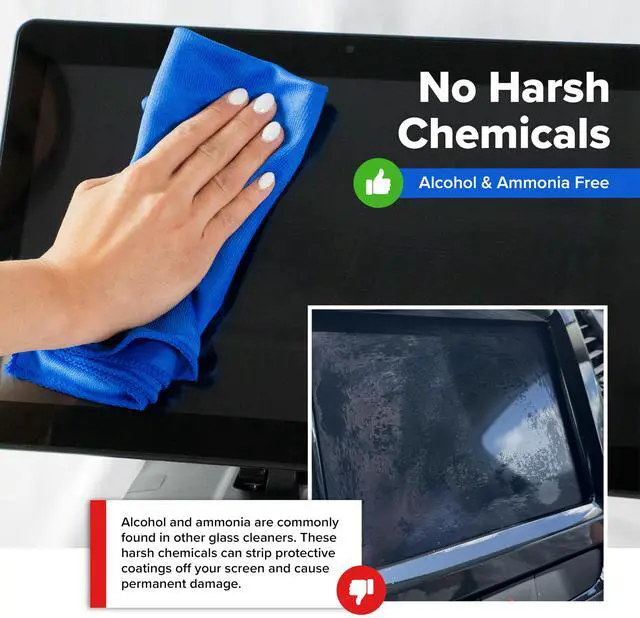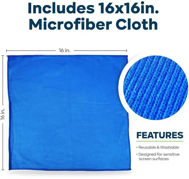 Streak-Free Clean for All Screens CrystalVu screen cleaner spray delivers a thorough clean that removes fingerprints, smudges, dust, and oily residue from all your devices. This 16oz OLED screen cleaner works as an effective flat-screen TV cleaner, phone screen cleaner, and screen cleaner for car display systems. The NSF formula provides a streak-free, haze-free finish on LCD, LED, and OLED displays without damaging delicate coatings. Keep your electronics looking sharp and crystal clear for better viewing at home, work, or school. Complete Cleaning Kit with Microfiber Cloth This screen cleaning kit includes one high-quality microfiber cloth that is lint-free and non-abrasive, protecting displays from scratches while lifting away dirt. The reusable and washable cloth works like a professional glasses cleaning cloth or screen wipe, offering long-term value. Combined with the 16oz screen cleaner spray, you get everything needed to maintain TVs, smartphones, tablets, laptops, monitors, and touchscreens. Safe Formula for Daily Use The gentle, NSF-compliant formula is safe for your skin and sensitive screen coatings, making it ideal for frequent cleaning of electronics. Whether maintaining personal devices or business displays in offices, schools, and businesses, this cleaner meets strict safety standards. It works effectively as an eye glass cleaner spray alternative and as part of your car detailing supplies for automotive touchscreens. Trust CrystalVu to deliver fast, reliable results that keep your digital world pristine.