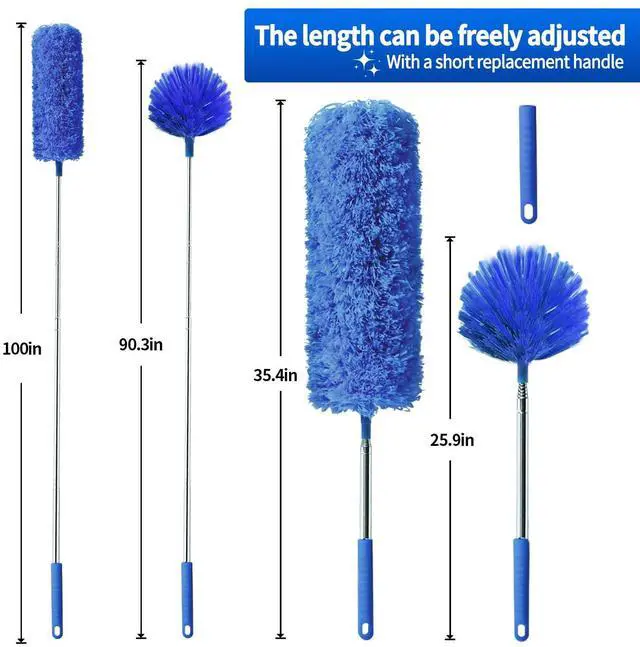 Cobweb Duster with Extension Pole, Washable Cleaning Duster Set with 2 Duster Heads, Spider Web Brush with Pole,high Ceiling Duster with Extension Pole,Cleaning Supplies,Ceiling Fan Cleaner