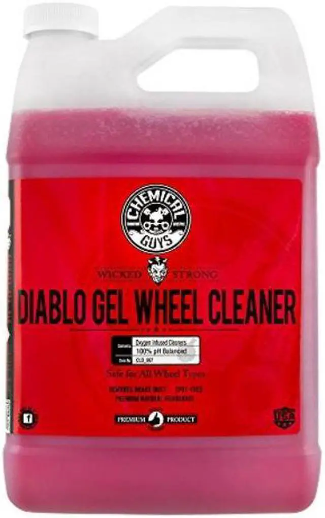 Diablo Gel can be applied with a brush or sprayed directly on the wheel. Diablo Gel is non-acid based, non-caustic based, water-based extra slippery gel that safely cleans all wheels. Diablo Gel works on painted wheels, clear-coated, polished, chrome or anodized wheels. It is 100% pH balanced and neutral so it's safe for delicate wheels. A single glance at Diablo Gel clearly shows how it holds the oxygen pockets inside of the products. Diablo Gel's unique extra-slippery formulation lifts brake dust, dirt and contaminates away from any surface holding it in complete suspension so it can be safely and easily rinsed off without staining any surface. Premium natural fragrance and 100% biodegradable composition.