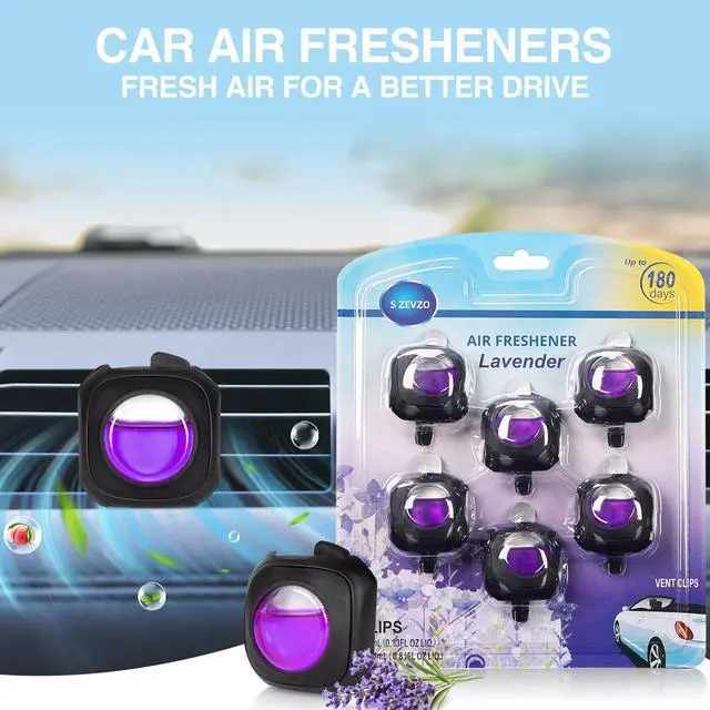 6-Pack Blister Card Packaging, Calming Lavender Scent: S ZEVZO Lavender type Car fragrance comes in a practical blister card packaging, with 6 black fragrances in one pack. Its soothing lavender scent brings a sense of relaxation and tranquility to your car, effectively masking unwanted odors and creating a peaceful driving atmosphere.