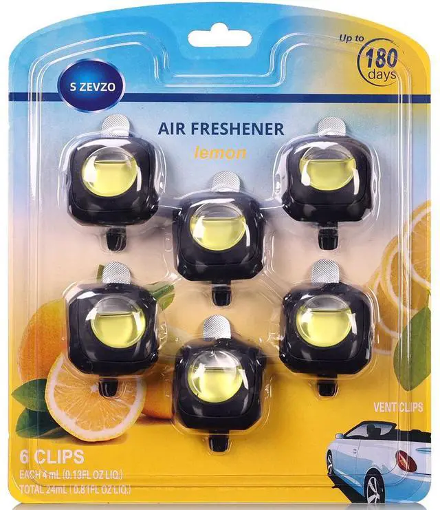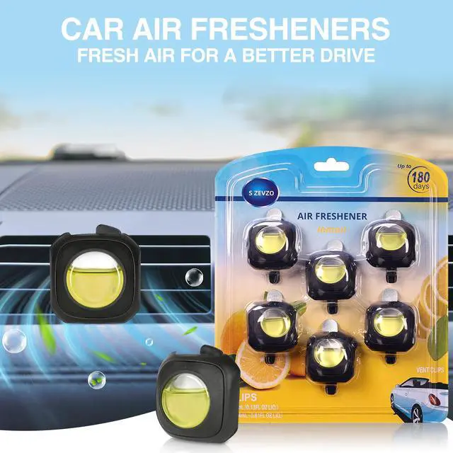 6-Pack Blister Card Packaging, Zesty Lemon Scent: S ZEVZO Lemon flavor Car fragrance comes in a practical blister card packaging, with 6 black fragrances in one pack. Its bright, citrusy lemon scent delivers an instant pick-me-up, cutting through stale odors and infusing your car with a fresh, invigorating atmosphere that mimics the crispness of a new car.