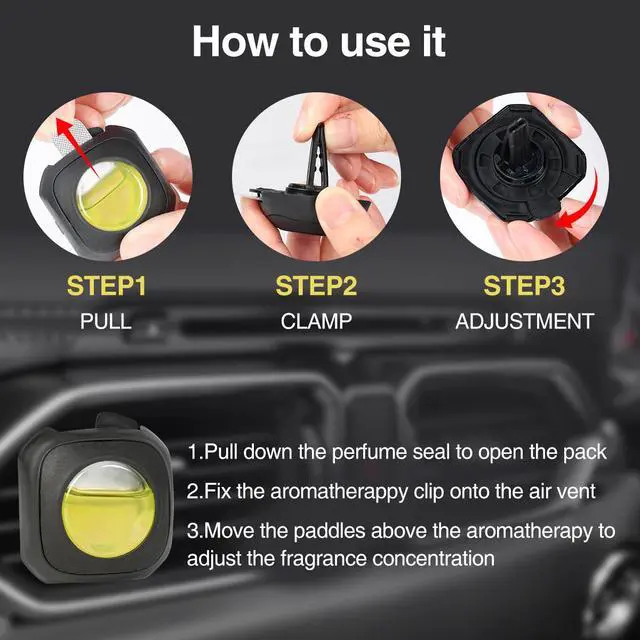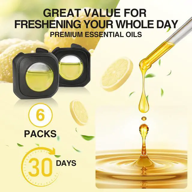 4ml per Unit, Long-Lasting Freshness: Each car fragrance holds 4ml, totaling 24ml for the 6-pack. Equipped with steady release technology, the lively lemon aroma lingers in your vehicle for an extended period, reducing the need for frequent replacements and keeping your car smelling consistently fresh.