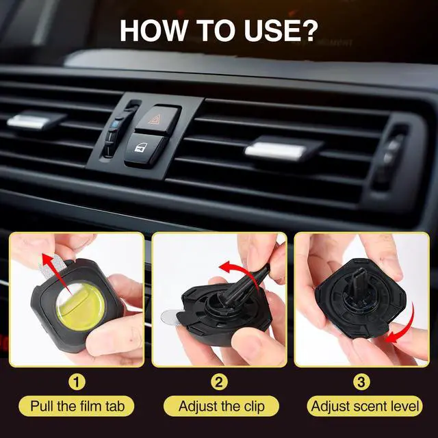 Sleek Black Design, Fits Any Interior: Featuring a sleek black finish, these fragrances boast a modern, understated design that complements all car interior styles. Their compact size allows for easy placement in cup holders, on the center console, or other spots, adding a subtle touch of elegance to your cars decor.