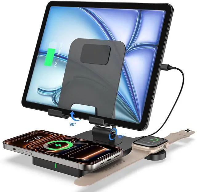 - [User Friendly Design]- This for iPad charging station is designed with non-slip silicone to prevent your device from slipping or flipping. The charging stand for multiple devices comes with a soft LED indicator that shows you the charging status of your device. The flashing white light alerts you to foreign objects or devices that are not in the correct charging position. Definitely a perfect nightstand charging station. (There is no indicator light prompt for iPad charging.)