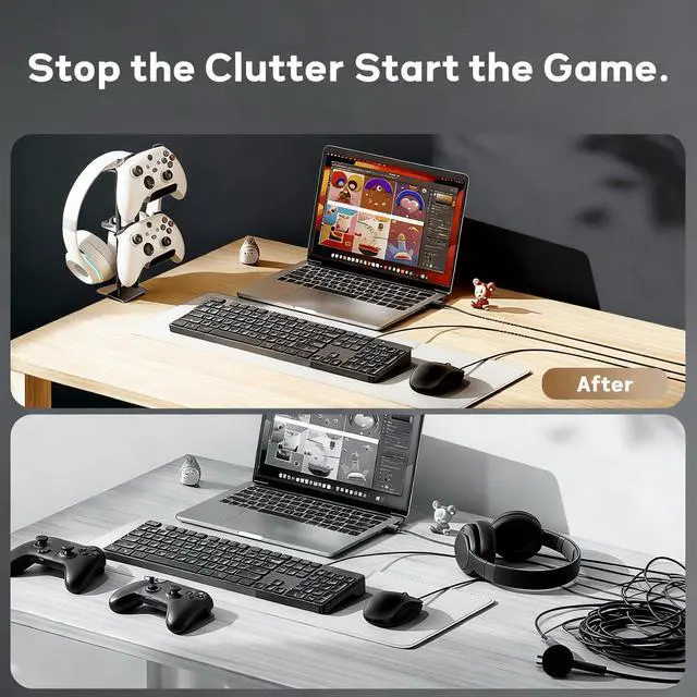 5. Quick Installation & Universal Compatibility - Get organized in minute with a straightforward setup. The universal design safely holds most popular over-ear headphones and controllers for PS5, Xbox Series X/S, and more, making it the ultimate cable management and organization solution for every gamer.