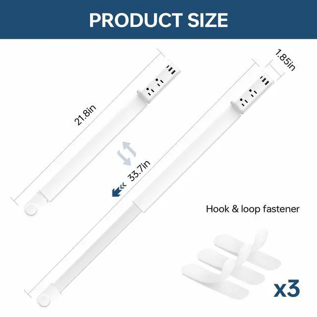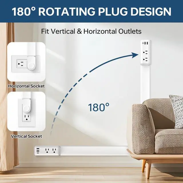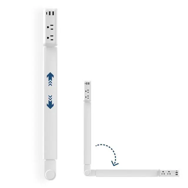 Adjustable Length & 180° Swivel Length can extend from 22" to 34" and the base can rotate 180 degrees, easy to access hard to reach outlets like low baseboard socket or behind sofa, fits vertical & horizontal outlets.