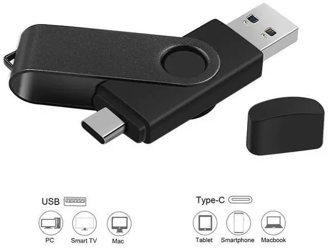 Dual-Port USB Flash Drive The Ultimate Cross-Device Storage Solution! Never Worry About Compatibility Again! This 2-in-1 USB flash drive features both USB-C and USB-A connectors, making it the perfect portable storage