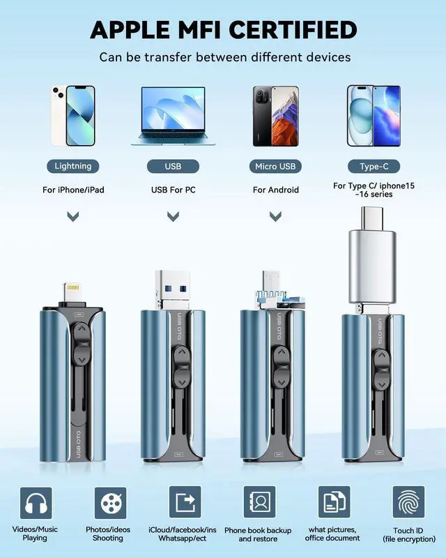 Keep your treasured memories safe with the usb flash drive. Effortlessly back up your latest photos, videos, and contacts from your iPhone with just one click.