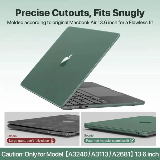 Soonjet Compatible for MacBook Air 13.6 inch Case M4 M3 M2 2025 2024-2022 Release Model A3240 A3113 A2681, Sturdy Protective Hard Shell Case Cover for MacBook Air M2 13 inch