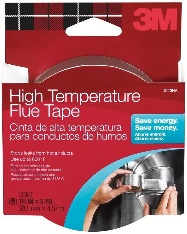 Stops leaks from hot air ducts. Use at temperatures up to 600 deg. F. (315 deg. C. ). Clean surface and allow to cool. Apply directly from roll. Recommended for seasonal use. Tape may lift off previously damaged, cracked, or peeling coatings when removed.