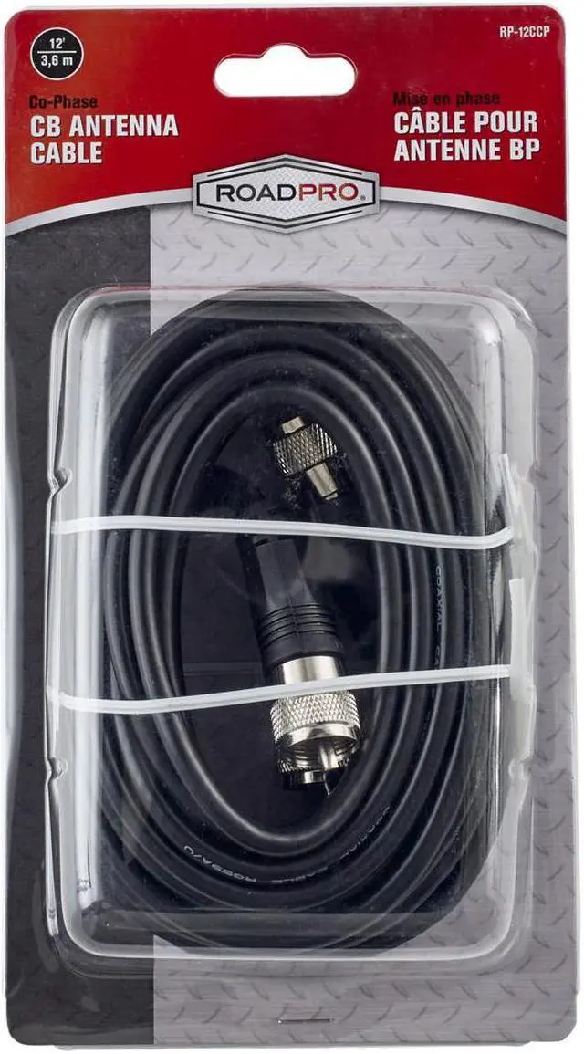 ROADPRO R RP-12CCP 12 CB ANTENNA CO-PHASE COAX CABLE WITH 3 PL-259 CONNECTORS BLACKRG-59A/U Coaxial Cable w/Molded PL-259 Connectors for Moisture Protection For Use with Dual CB Antenna SO-239 Stud Mounts 95% Shielding Coverage for Protection of RF Leaks and Interference Stranded Center Conductor for Flexibility