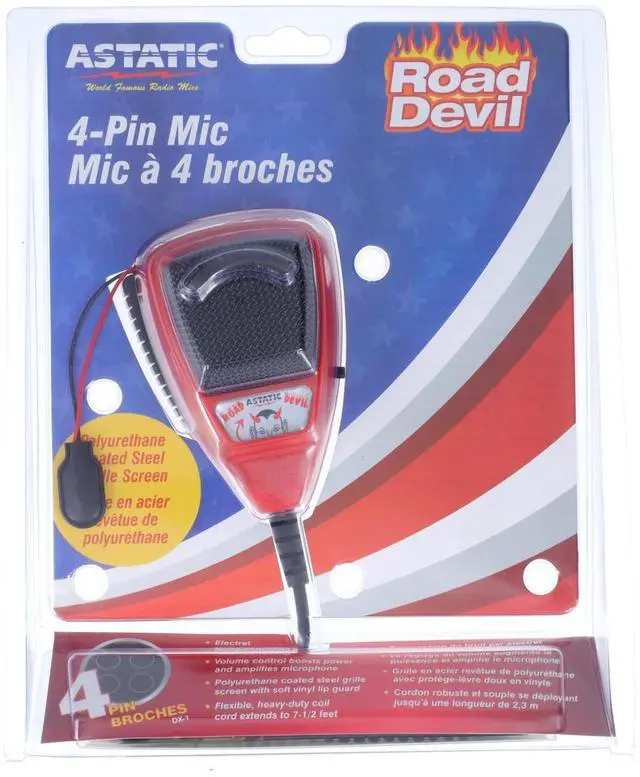 ASTATIC TM 302-10036 RD104E ROAD DEVIL AMPLIFIED 4-PIN CB MICROPHONE