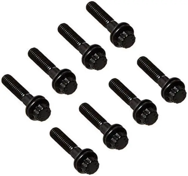 Prevent intake manifold leaks with ARPs quality fasteners Theyre rated at 170, 000 psi and precision machined for optimum thread engagement Wide underhead flange and companion washers provide even load distribution Precision rolled threads prevent galling while promoting more consistent torque loading Facilitates optimum sealing of gasket surfaces Available in choice of black oxide finish chrome moly or corrosion resistant stainless steel, as well as hex or 12-point heads Washers includedSpecial NAScAR model bolts have drilled heads (one per set) to facilitate tech officials sealing These 12-point bolts have a generous flange head for superior load distribution Intake Manifold Bolt Kit 12Point Head Material Black Oxide