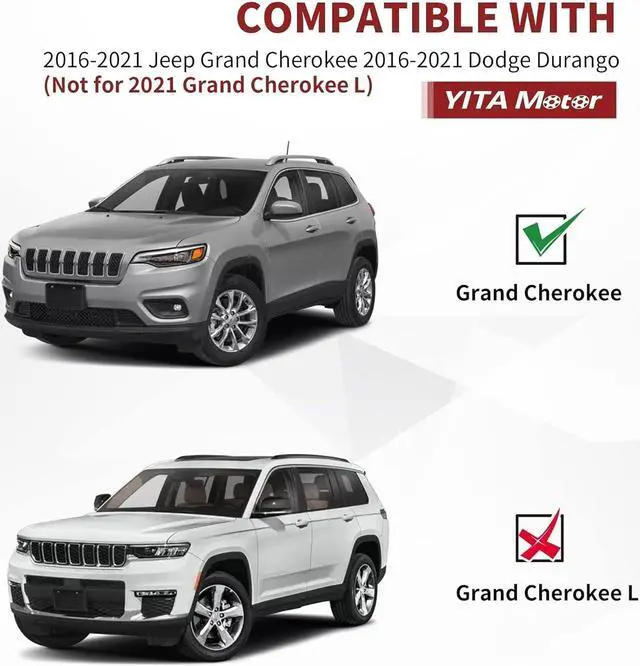 Custom Fit: These floor mats are compatible with 2022 Jeep Grand Cherokee WK, 2016-2021 Jeep Grand Cherokee/Dodge Durango, NOT fits for Grand Cherokee L, does NOT fit for Durango 2nd row bucket seating type. 3D laser scanning technology giving the front and back fully protection. Not for vehicles with vinyl floors. Please take out old floor mats before installing new floor liners.