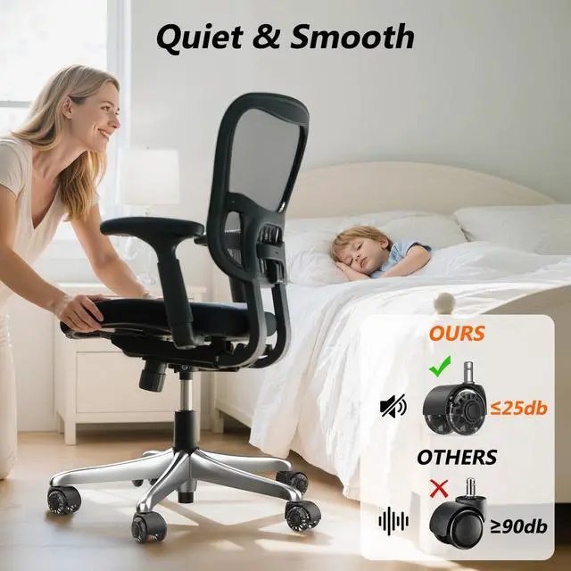 Works On ALL Surfaces Chair Wheels- even that annoying office carpet (32dB quieter than standard wheels)While coworkers' caster wheels screech with every fidget, yours moves in whisper-quiet precisionNo more embarrassing noise interruptions