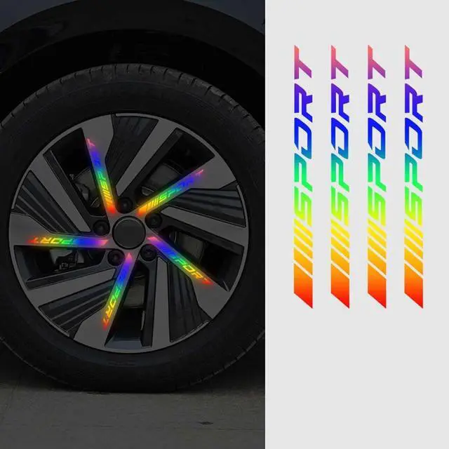 Car Wheel Hub Sport Reflective Stickers, Night Light, Multicolor, 16Pcs/Pack