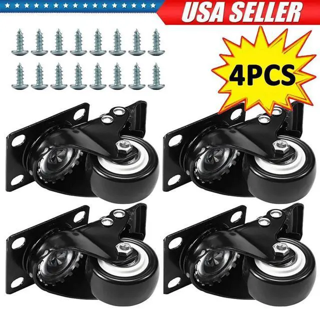 FOH 2" Caster Wheels Set of 4, Heavy Duty Casters with Brake No Noise Locking Casters Polyurethane (PU) Wheels Swivel Plate Castors
