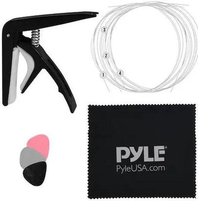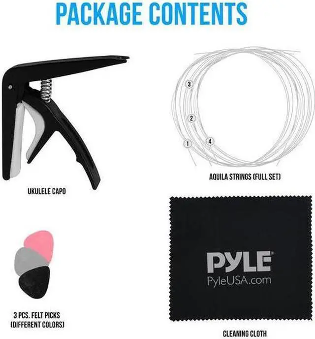 Features: - Aquila Strings to Create a Full Sound - Full Set of Replacement - Ensures Quality and Durability - 3 pcs. of Felt Picks for More Comfortable Practicing and Playing - Ukulele Capotasto (Capo) to Strap Around the Neck and Keeps All the Strings Down on the Same Fret - Cleaning Cloth to Keep Ukulele Clean - 100% Soft Cotton Cloth to Maintain Cleanliness of the Strings and Fretboard What's in the