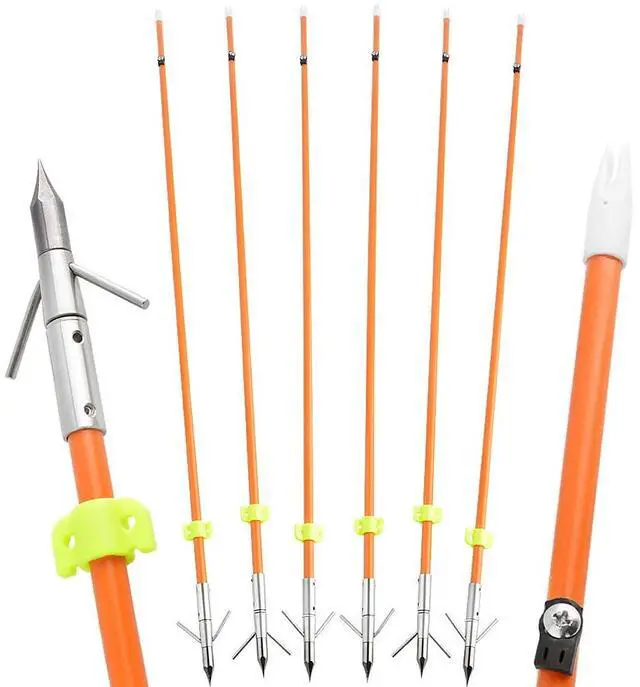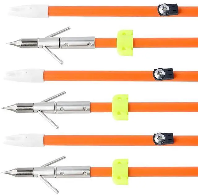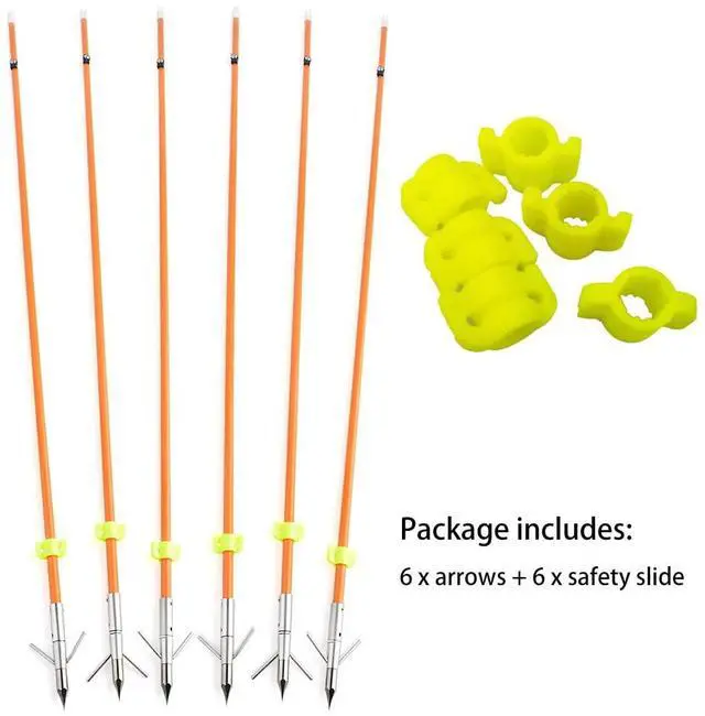 - Package includes: 6 x bowfishing arrows + 6 x yellow safety slide