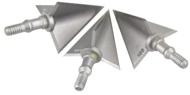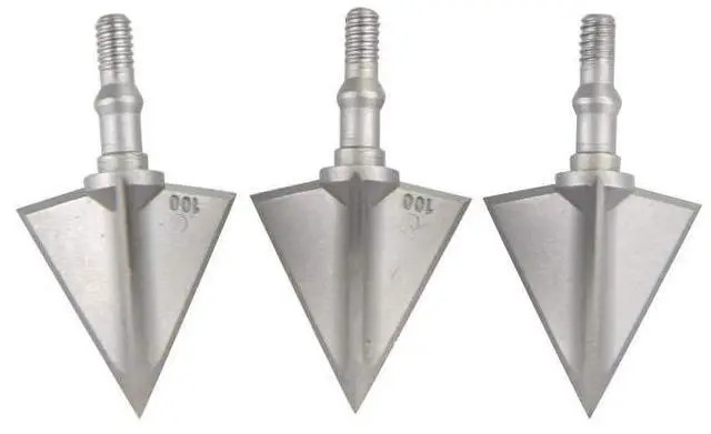 100 grain broadheads with 3 extremely sharp fixed blades, durable, sharp, fast, suitable for hunting and shooting games.Spin-tested to avoid wobbling in flight, this broadhead is one very-rugged arrow tip. It will penetrate deep into any animal and cause enough damage.Easy install: The standard screw-in thread is compatible with all traditional bows and compound bows.
