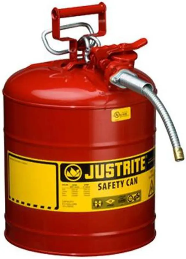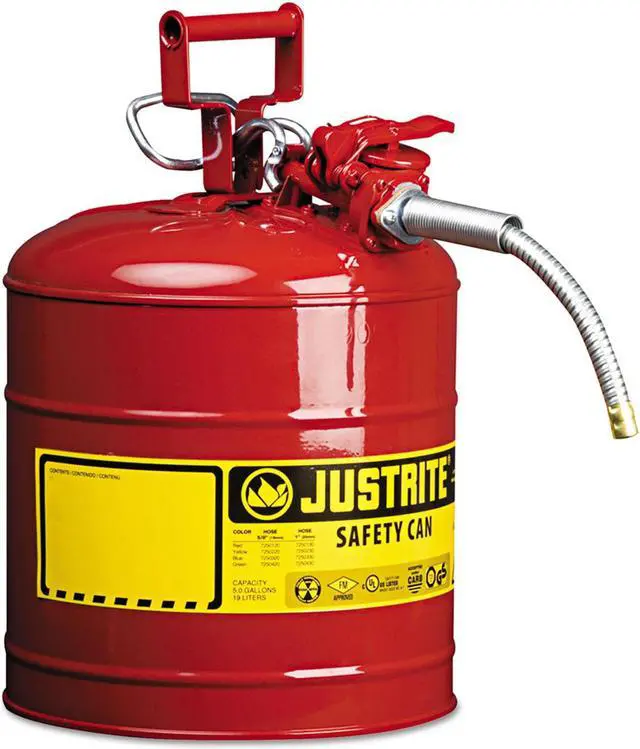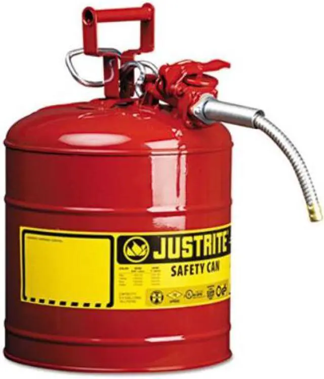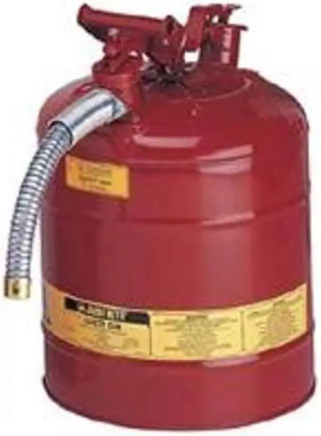 AccuFlow™ manifold design with Safe-Squeeze® trigger affords faster flow and better control for pouring flammable liquids. Easy-access fill port with ergonomic lift-lever. Auto-venting gasket prevents hazardous pressure buildup. Precision flame arrestor effectively dissipates heat to inhibit flashback ignition and minimize risk of fire. Long, flexible stainless steel hose enables safe, contained pouring into smaller openings. Large warning label provides blank writing area for specifically identifying contents or use. Corrosion-resistant.