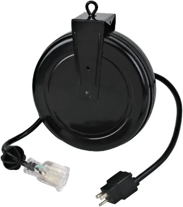 Their product features include: breaker protection, molded plugs and protectors, three grounded outlets, quick release mounting brackets, a convenient carry handle, weather protection cord, and color box packaging. The extension cord sets on retractable wheels are available in a range of lengths, and can be stored tangle-free. Alert Stamping is standing by to meet all of your extension cord requirements. This 5020TFC retractable cord reel features 15 amp resettable circuit breaker protected plug. Cord pulls out of reel to desired length and locks. Retracts with slight tug on cord, providing built-in tangle-free cord storage.