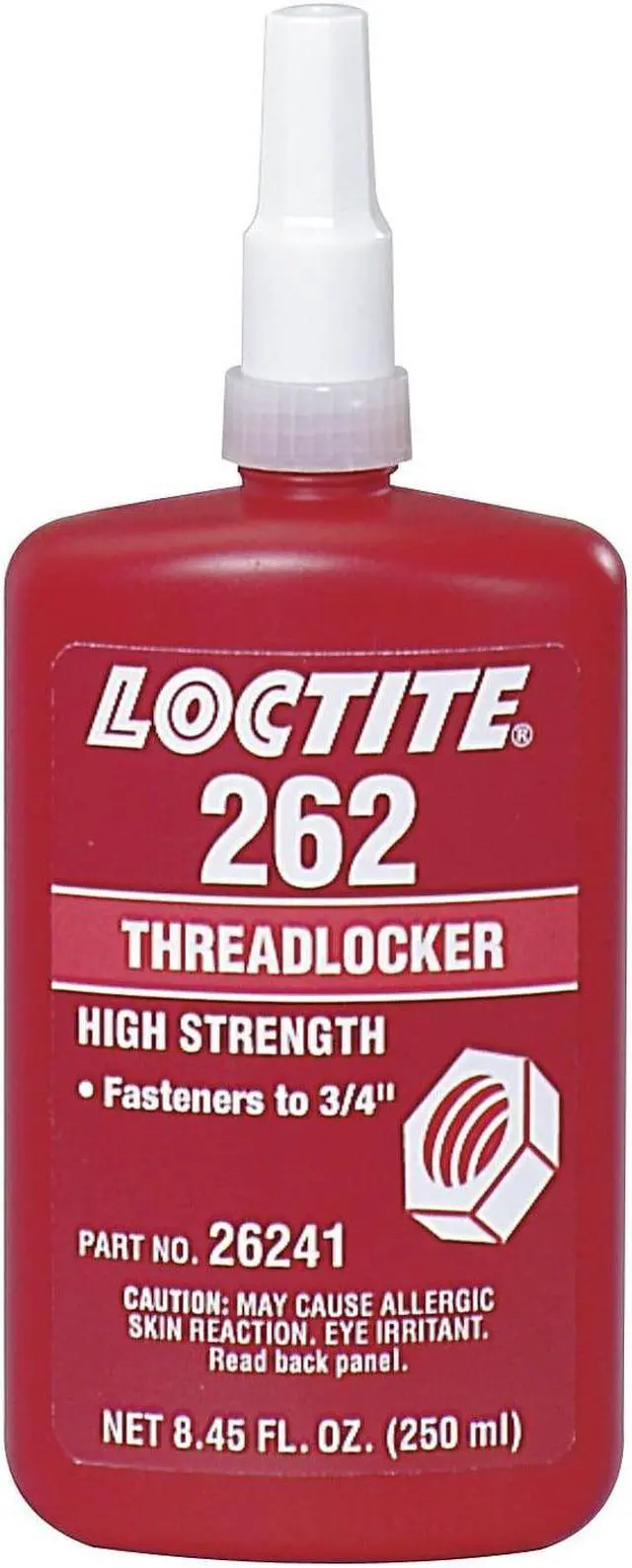 A permanent threadlocker for fasteners up to 3/4" in diameter. High lubrication for easy assembly. Excellent for preventing rust and corrosion in extreme chemical/environmental conditions. Type: Thread Seal; Capacity (Volume): 250 mL; Color(s): Red; Packing Type: Bottle.