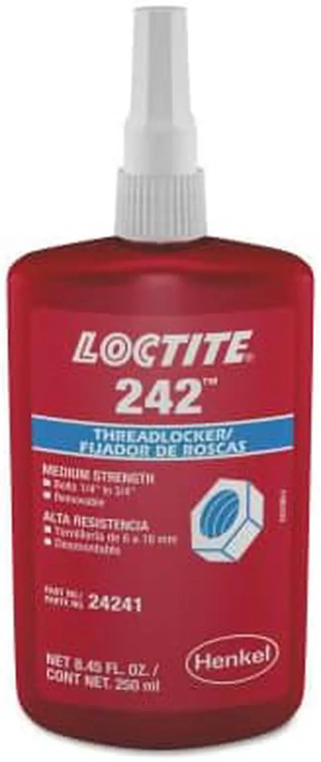 Loctite 242 Threadlockers, Medium Strength A general purpose, removable threadlocker for fasteners between 1/4" and 3/4" diameters. Controlled lubricity for accurate clamp loads. Parts can be separated using hand tools Pack of 1