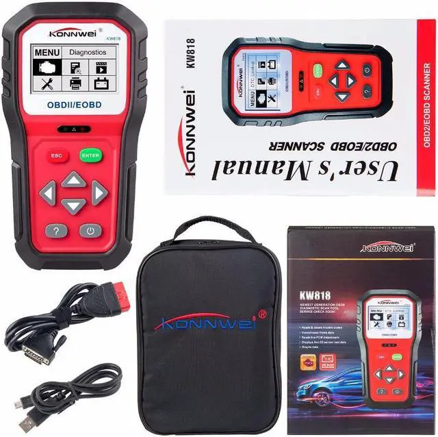 KONNWEI KW818 Enhanced OBD2 Scanner The KONNWEI KW818 is the newest designed with the brand new diagnostic interface (UI) car diagnsotic scanner. Universal OBDII /EOBD/ CAN protocols makes it work with cars worldwide, new added battery check function, you will get not only a scanner, but also a car battery checker.