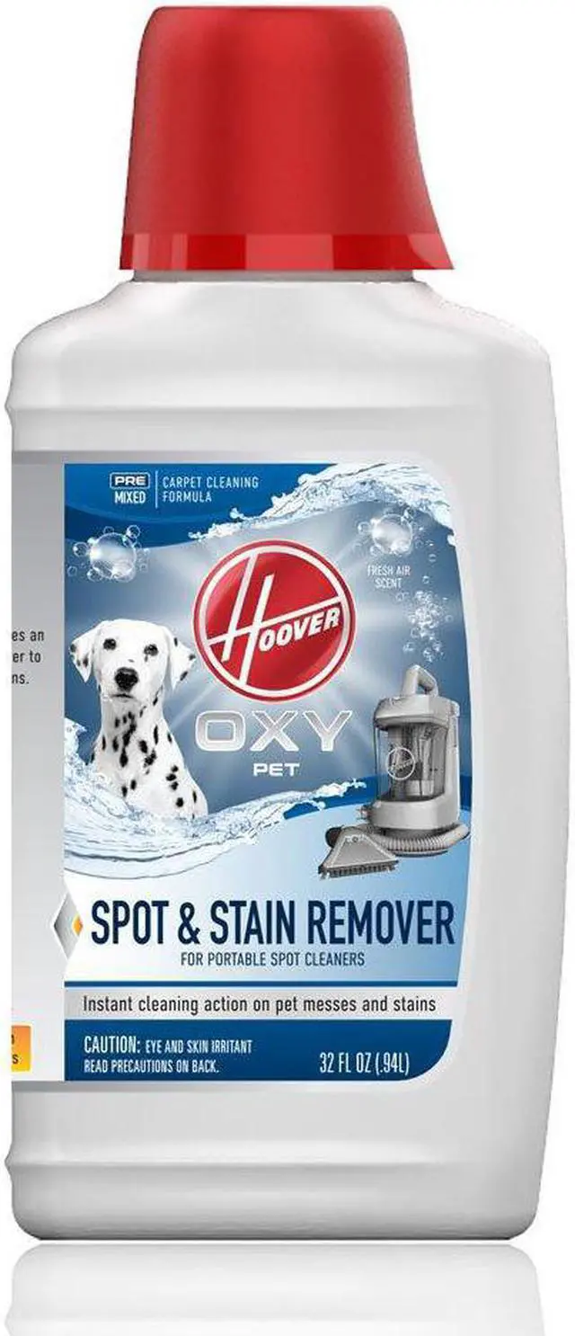 HOOVER® Oxy Pet Pre-Mixed Carpet Cleaning Formula makes it fast and easy to clean up after your furry friends while tackling tough stains! Specifically designed for use in portable carpet and upholstery cleaners, this unique solution uses odor neutralizing technology and the power of Oxy to help eliminate pet odors and remove tough pet messes. It also has the power of Oxy to remove tough set-in stains!