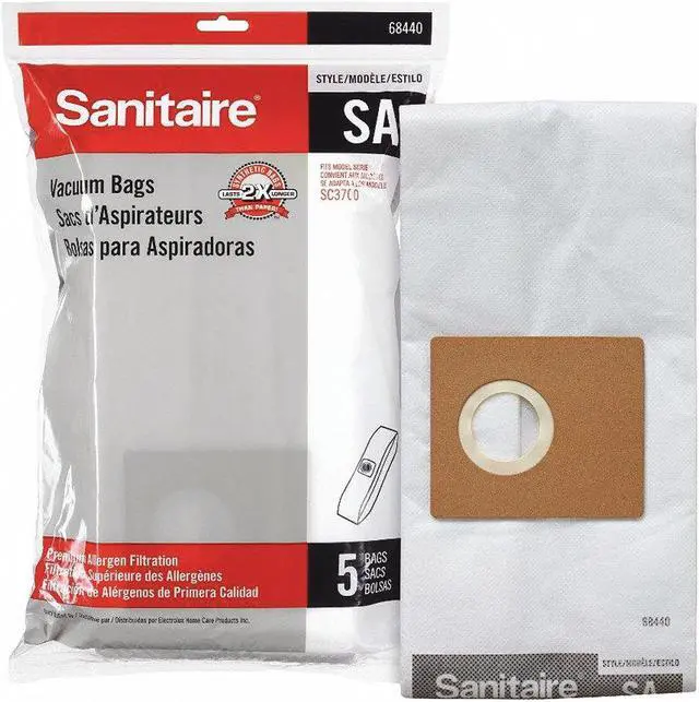 Vacuum Bag, For Vacuum Type Canister Vacuum, Fits Vacuum Brand Sanitaire, Fits Vacuum Models SC3700A, Bag Filtration Type Standard, Filter Efficiency 93 Percent at 1 micron, Bag Material Paper, Ply Count 5-Ply, Bag Pickup Type Dry, Bag Reusability Disposable, Height 16 1/2 in, Length 2 in, Width/Diameter 10 1/2 in, Package Quantity 50. This item has been restricted from sale in the following state (s): []