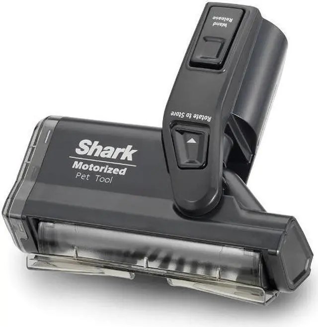 Powered by a motor, this brush removes pet hair and embedded dirt from stairs, upholstery, tabletops, bookshelves, car interiors, and more. Can be stored onboard the vacuum or on the wall mount. Comes with an instruction sheet.