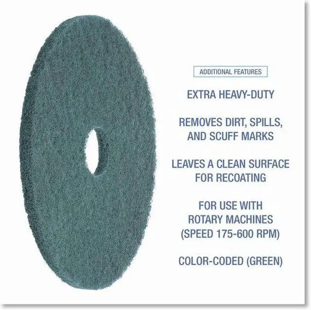 BOARDWALK BWK4018GRE Heavy-Duty Scrubbing Floor Pads, 18" Diameter, Green, PK5
