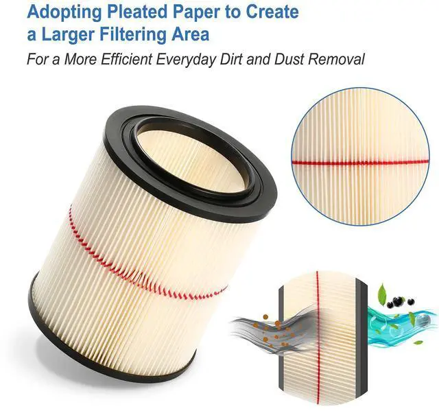 Well-Filtering Performance:Adopting pleated paper technology,which creates a larger filtering area for a more efficient everyday dirt and dust removal like sawdust,wood chips,job site debris and car or truck dirt.