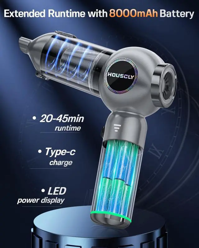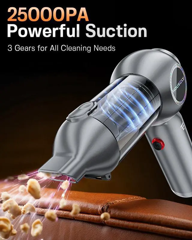 • Industry-Leading 25000Pa Suction PowerEngineered with a high-speed brushless motor, this handheld vacuum delivers an exceptional 25,000Pa of suctioneffortlessly capturing embedded debris, fine dust, and pet hair with precision.