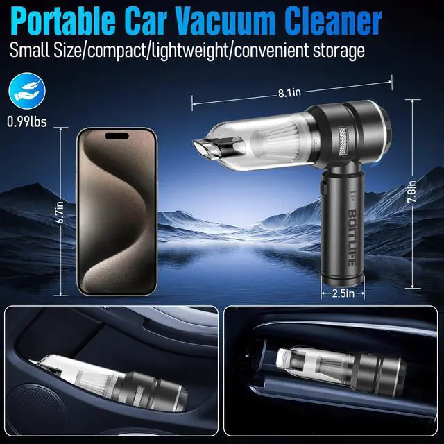 High Strong Suction--The portable car vacuum/aspiradora para carro has a super strong suction force of 18000pa! Small vacuum cleaner with great power!