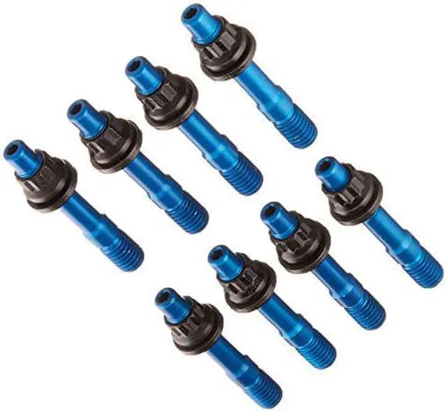 Use of these special studs could save you thousands of dollars Unexpected blower explosions can cause serious and expensive damage, but these break-away blower studs are engineered to allow separation of the manifold and blower to minimize the damage Manufactured from premium-quality aluminum and heat-treated to provide the optimum balance between keeping the supercharger in place and breaking under a predetermined amount of force The anodized studs are 716 in diameter and have an overall length of 2880, and the kit comes complete with 12-point aerospace quality steel nuts and heavy-duty parallel-ground and hardened steel washers