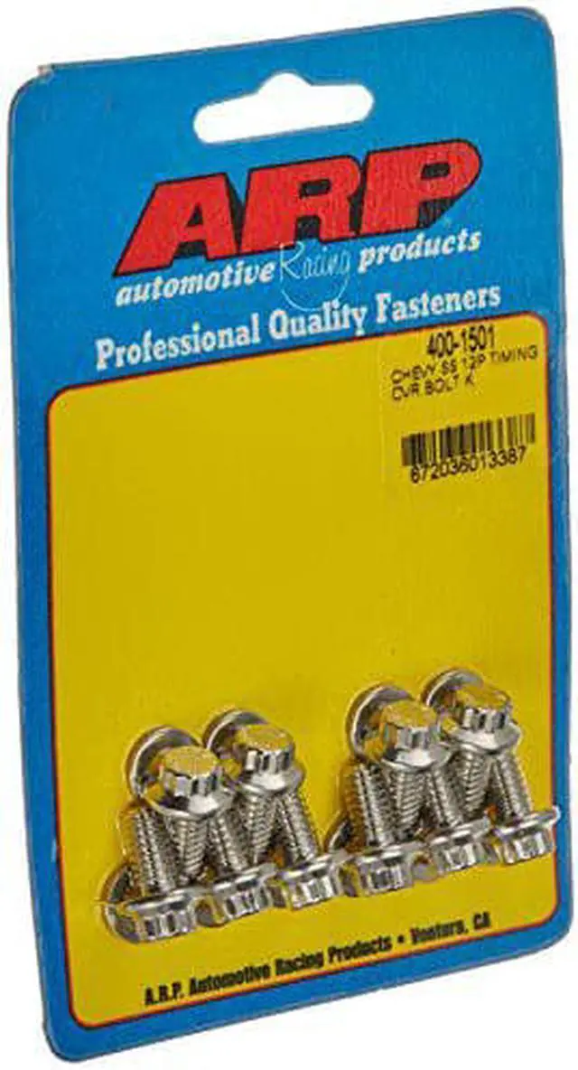 To maintain a reputation for zero defects, ensure optimum quality control, and produce fasteners of exceptionally high quality, ARP controls all aspects of the manufacturing process, performing all operations in-house where they can be closely monitored This timing cover bolt kit is a good example of how ARP takes extraordinary steps to produce the very finest products of their kind on the market today These bolts are manufactured from ARP 300 polished stainless steel, which is rated at 170, 000 psi They feature compact 12-point style heads and come complete with high quality washers